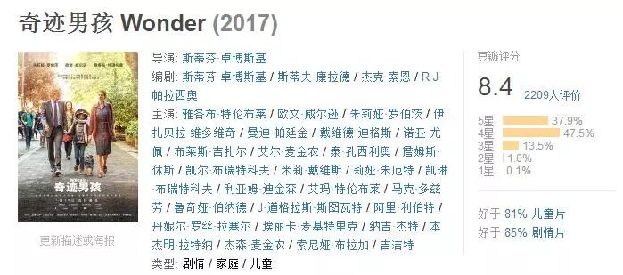 电影改编自全球畅销小说《奇迹》,讲述了一个温暖千万家庭的成长故事。
