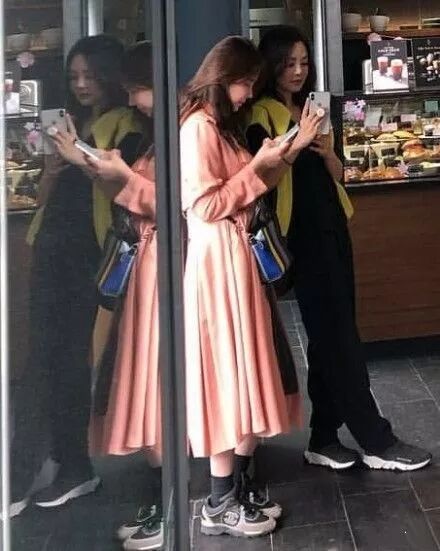 蔡琳这次的穿衣打扮特别的迷,她的头发还有点小卷毛,身上穿了一条粉红色的连衣裙,其实这条裙子穿在她身上还比较贴合她的身材,就是为什么她脚上穿了一双运动鞋呢?而且还不是白色的,这样搭配起来就比较怪异了!