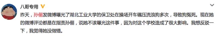 近日,孙俪因在微博怒斥某大学保卫处在操场开车碾压流浪狗多次,导致狗冤死,而遭到该大学学生的集体指责。说娘娘不该曝光这件事,因为对这个学校造成了很大影响……