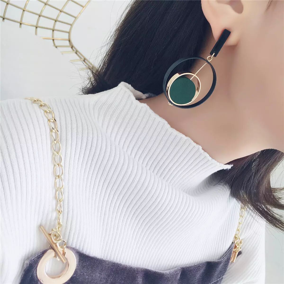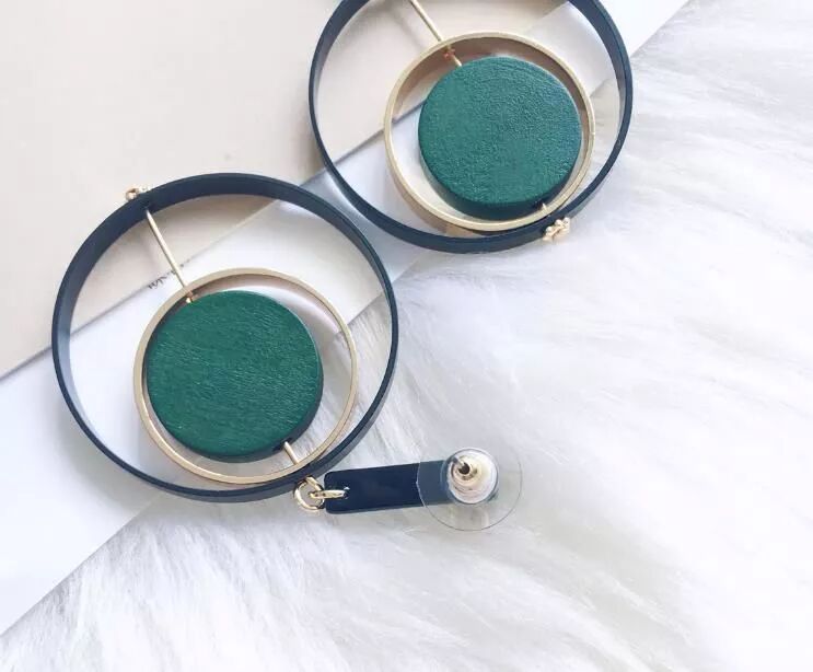 这个多层圆圈的耳饰,质感真的非常好!多层的几何圆环,最中间点睛的部分是木质的,非常个性、百搭。