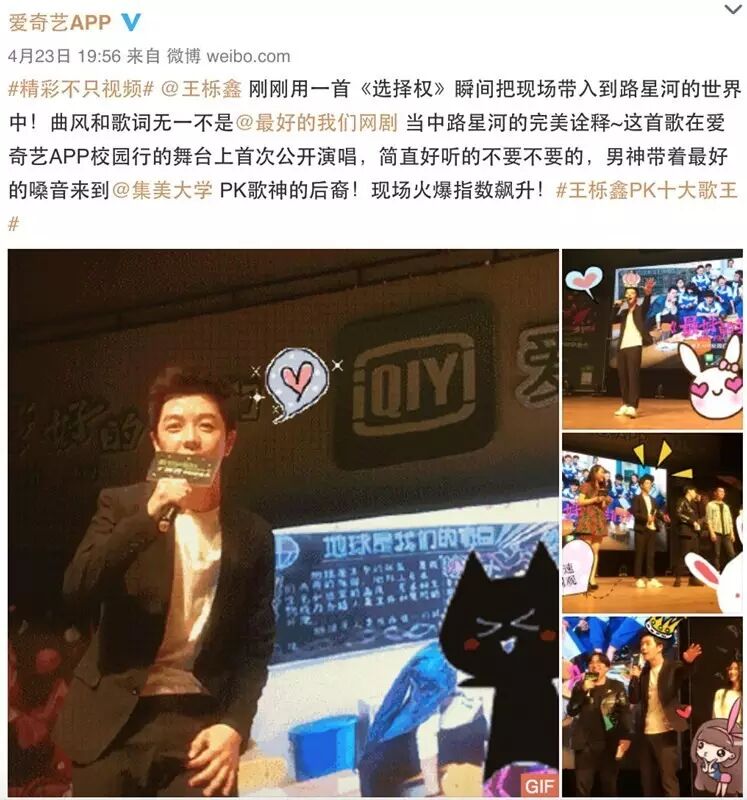 昨晚,在“爱奇艺app校园行-《最好的我们》王栎鑫校园见面会”上,王栎鑫与《最好的我们》中扮演班长徐延亮的大宝刘启恒亮相厦门集美大学,带来《最好的我们》的插曲《选择权》和一首从未公开演唱过的新歌《I love you》,与集美大学的校园十佳歌手的选手们来了一场“奇葩对大咖”的踢馆赛。