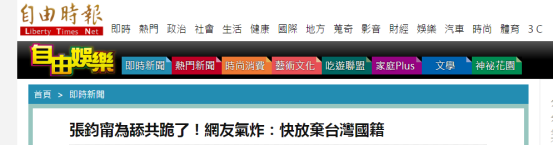 然而,岛内一些媒体却开始借机炒作。岛内绿媒《自由时报》6日发文炒作,声称“张钧甯撇台独”,更有甚者更是借部分亲绿网友之口大肆炮轰,挖苦讽刺张钧甯“很有潜力可以舔好舔满”“为舔共跪了”等等。