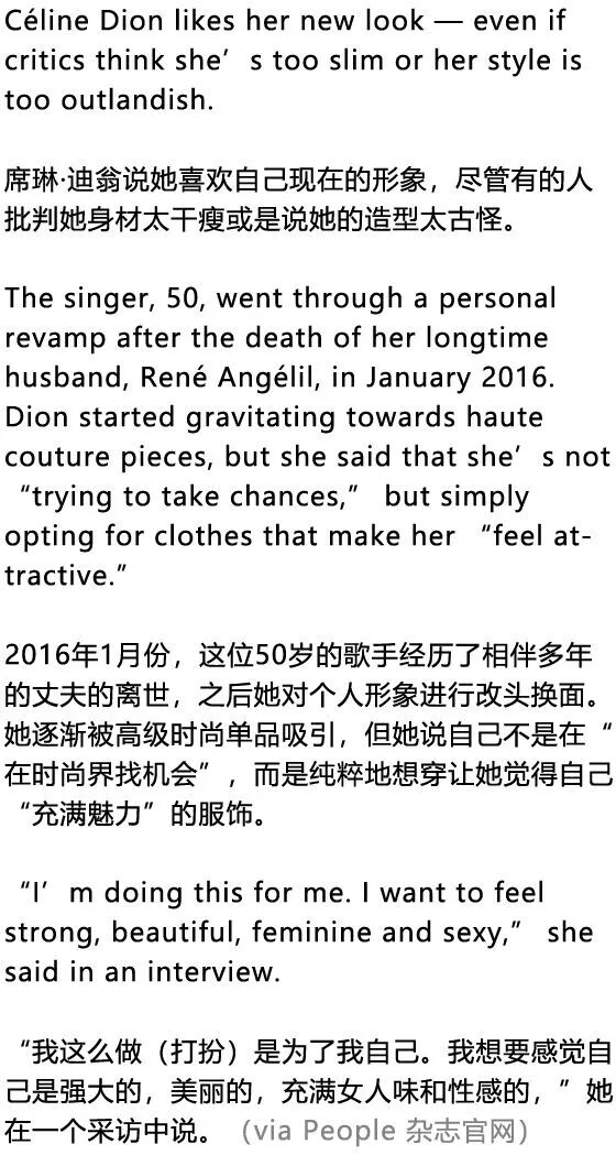 《席琳·迪翁啪啪啪打脸那些批判她削瘦身材的人:“别管我”》(via People 杂志官网)
