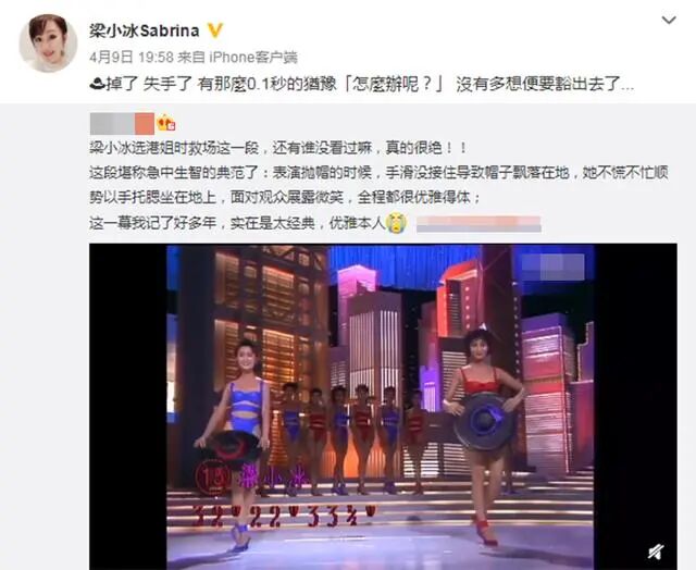 4月9日,梁小冰在个人社交账号上分享了自己当年选美失误的视频。