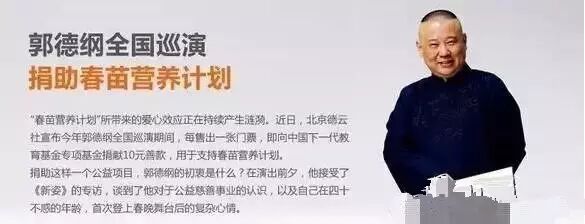 郭德纲:每卖一张门票就为安利春苗计划捐款10元
