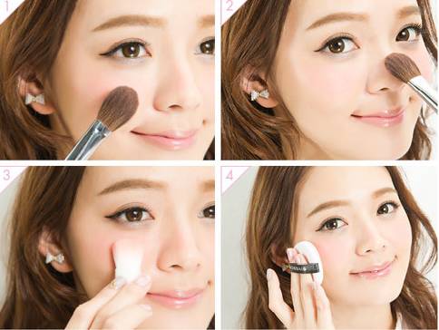 Point 2:定妆绝对必要:刷完腮红后还不能收工,再加点蜜粉饼明亮度更能提高。