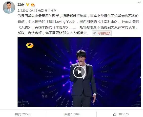 截了几张音乐博主耳帝对信的评价,觉得音乐的魅力更多在于歌手的自我创作吧!
