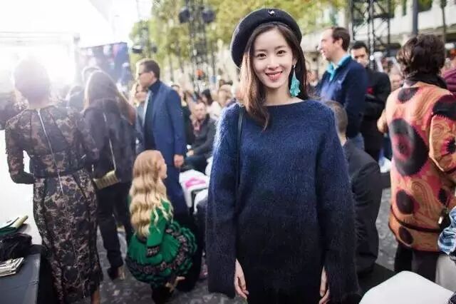 大大的黑色贝雷帽和深蓝色的毛衣,尤其是作为点睛之笔的大耳坠,看起来不仅皮肤白的发光,而且脸小一圈。