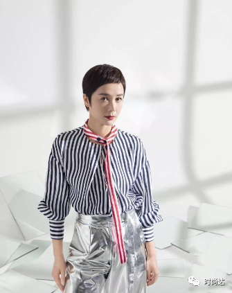 蒋雯丽展现了她的时尚洞察力和个性魅力,她身穿一件时尚灰黑拼接风衣,内搭一件蓝色条纹衬衫。风衣采用了灰黑色的拼接设计,展现出她对独特造型的追求。它的剪裁和线条使她的身材更加突出,同时散发着一种利落而精致的魅力。在风衣内部,她选择了一件蓝色条纹衬衫,为整个造型增添了一丝活力和轻松感。蓝色条纹衬衫的设计呼应着她的自由与自信,同时与灰黑色风衣形成了时尚的对比效果。这个搭配展现了她对时尚细节的独特把握,展示了她对个人风格的勇于探索