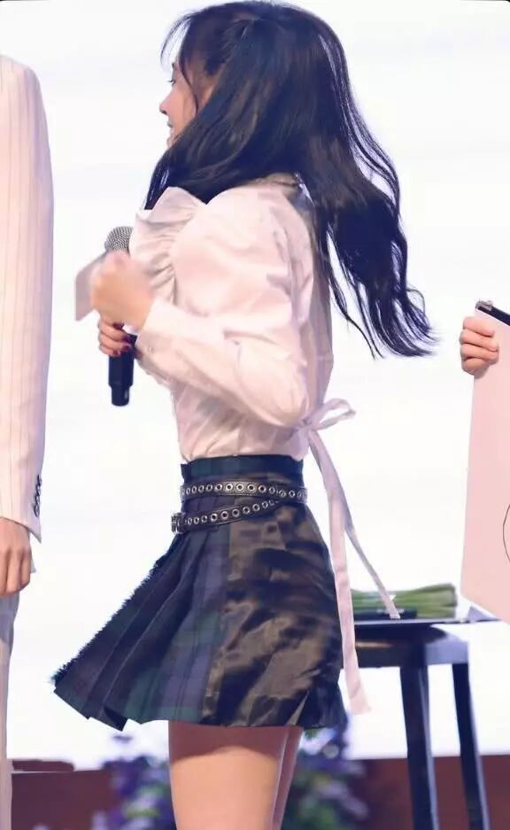 就是侧身一看,这腰带足足绕了两圈啊,可见鞠婧祎真的是好瘦,所以蚂蚁腰用在鞠婧祎身上简直太贴切了!真是瘦的让人心疼啊!