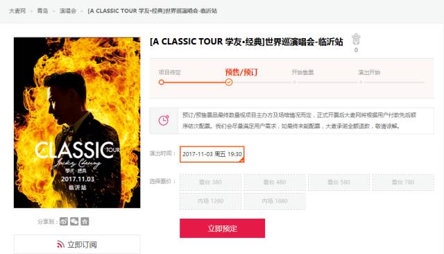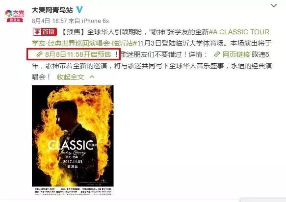上学期小圈已经给大家透露消息,张学友很有可能来临沂大学开世界巡回演唱会,这次终于确定了,从大麦网官方信息看,临沂站马上就可以预售 门票了!