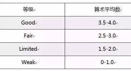 同时,ETS还会根据口语的三类话题(独立任务、综合任务中的校园话题和学术话题)对同学们的答案进行评价。同样是依据每道题的分数计算出算术平均数进行评判,共有四个等级,对应的分数区间如下: