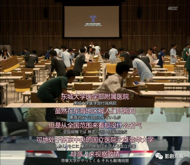 本剧一开场便介绍了两个医院的竞争——东城大学医学部附属医院、国立顶尖大学医院