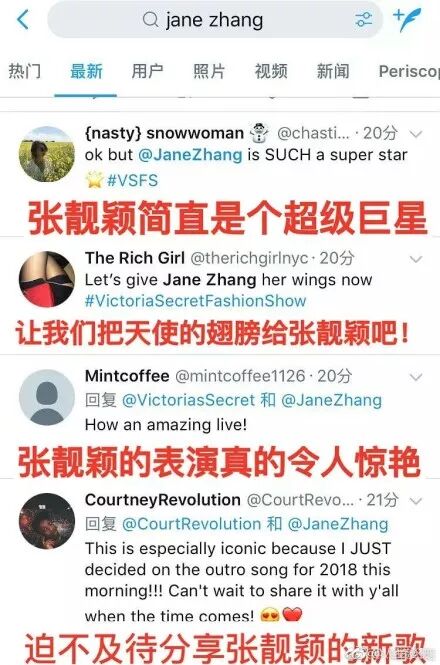 简单的一句话,不仅吐槽了张靓颖的造型,也嘲讽了张靓颖不够大牌,没有上维密的资格。