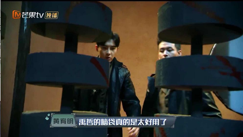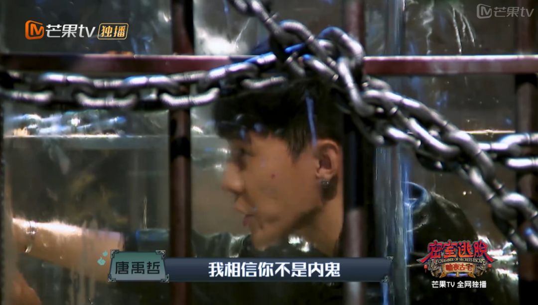 最惊险的是谎言村,当时唐禹哲和黄宥明都被锁在密室里,水都已经漫到脖子里,黄宥明急的一直大喊,还一直指责唐禹哲,但是唐禹哲不仅一边安慰躁动的队员,一边还从黄宥明的反应分析得出:这里的东西都是谎言,一切都是反着来的。在紧要关头找到钥匙,成功闯关。