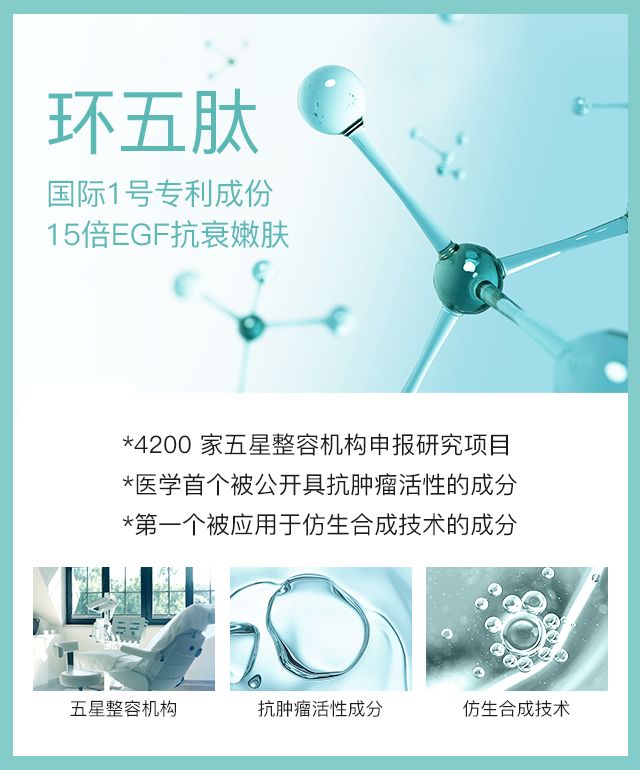 ▋ 环五肽,新生蛋白缔造者,15倍EGF(寡肽-1)抗衰嫩肤,有效提升胶原蛋白和弹力蛋白35%增生率,让肌肤“嘭”地活过来,快速抚平皱纹、淡化斑点、美白保湿,3D重塑完美轮廓。