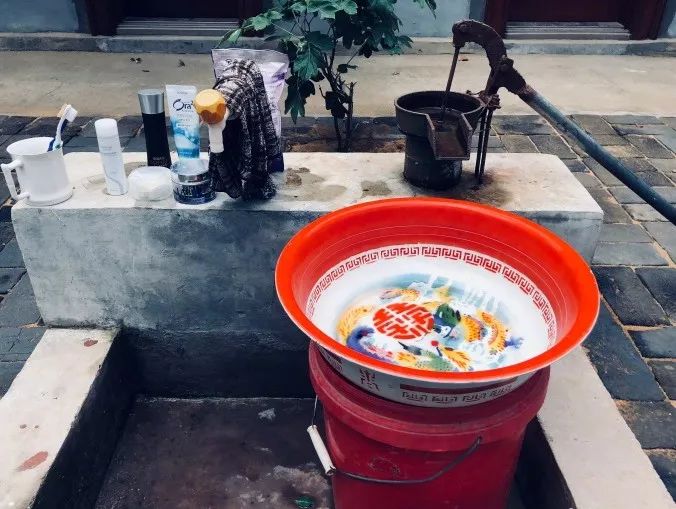 农家小院里的取水器和颇有年代感的搪瓷脸盆,相信很多家长都会有满满的回忆。
