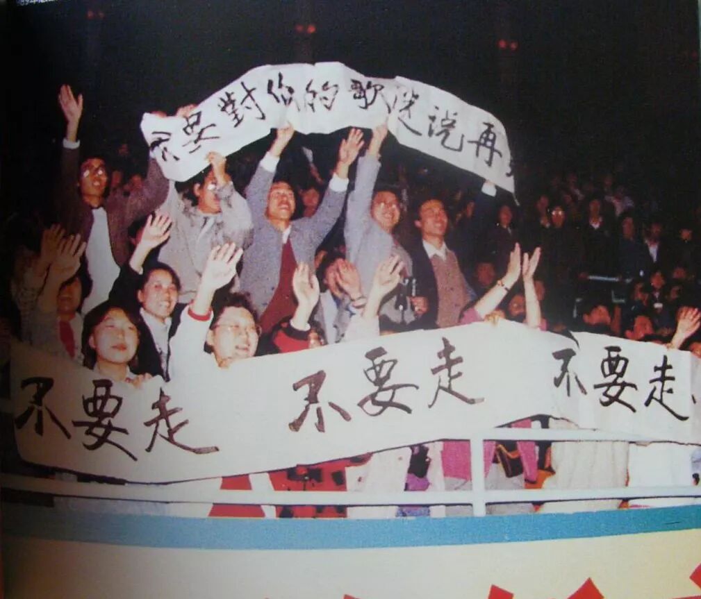演唱会上,激动的粉丝们拿毛笔写下大字呼喊“不要走”、“不要对你的歌迷说再见”,和时下迷妹举灯牌一样一样的。