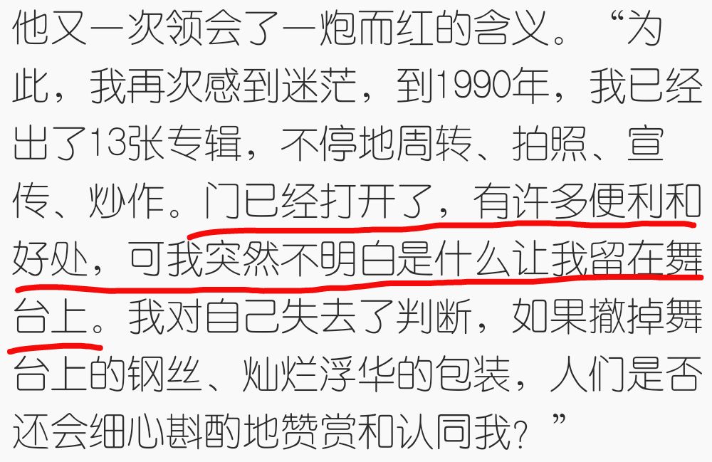 这位初代偶像的态度如果放当代偶像身上俨然很难想象,不在乎流量,不在乎逼格,不在乎资源,那是要追逐什么呢?