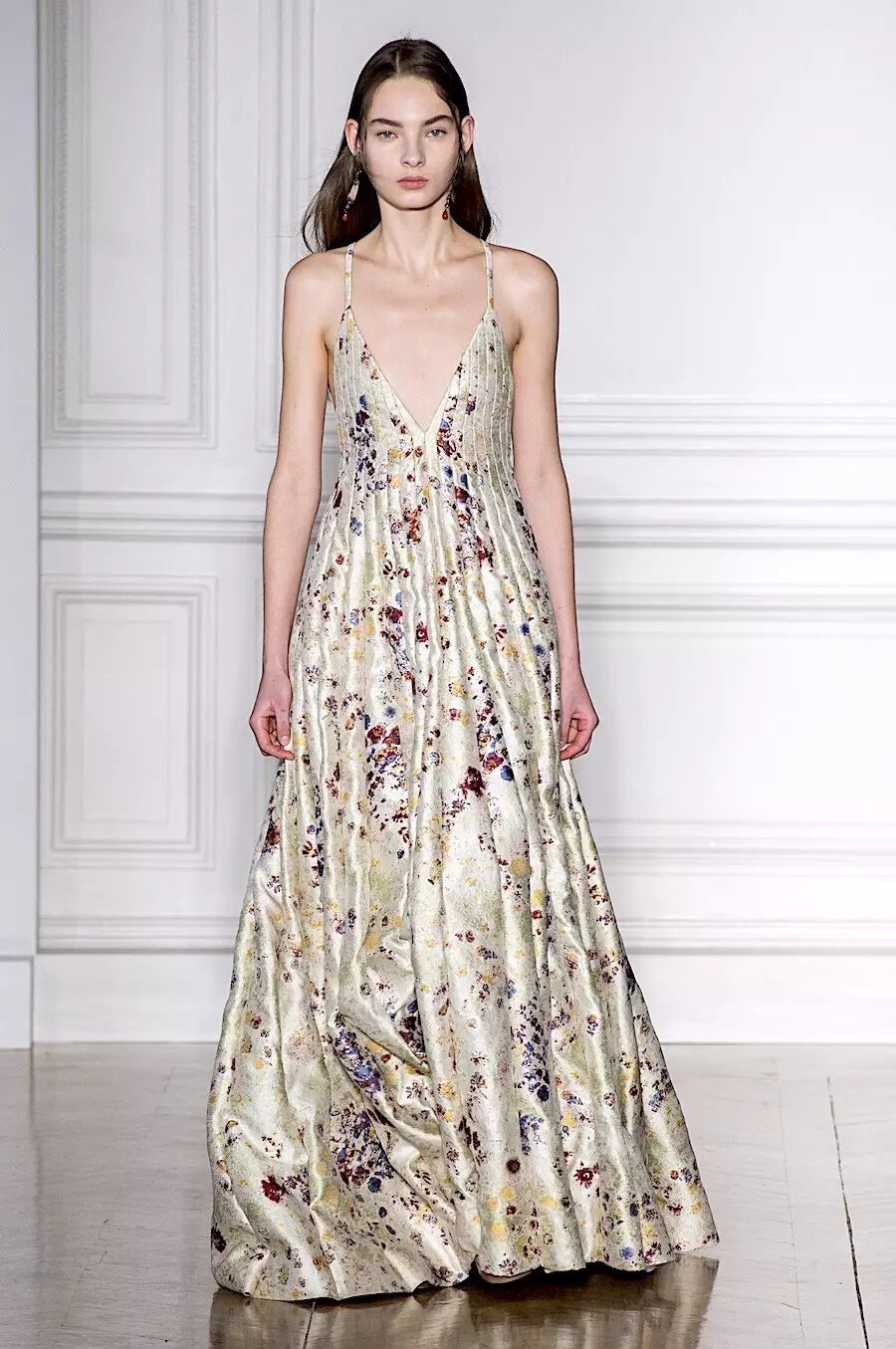 充满流逸美感的线条,让人一看就知道是Valentino出品的经典造型,在2017春夏季又找到新意;有意思的是,无论是伞形下摆还是娇美褶边亦或各种织物及不同材质的组合,都和线条配比一起凸显率性之美。