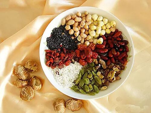 各地的水土与习俗不同,熬腊八粥时使用的食材也不尽相同。但不外乎有谷类、豆类和果实子仁类。一年来庄稼地里的收获,融入一锅粥里。