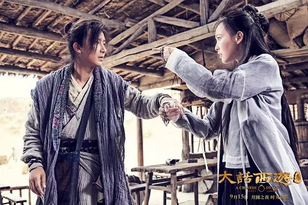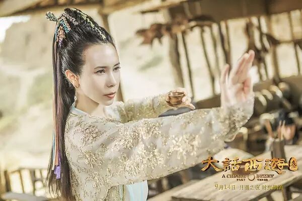 在大话西游一种,春三十娘一席黑纱走进客栈,手持桃花惊艳出场,阿娇似乎少了点娇媚…