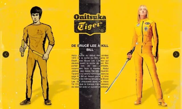 当然也别忘了鬼冢虎和李小龙的渊源之深,这双经典的黄色sneaker后来在电影杀死比尔里也有出现。