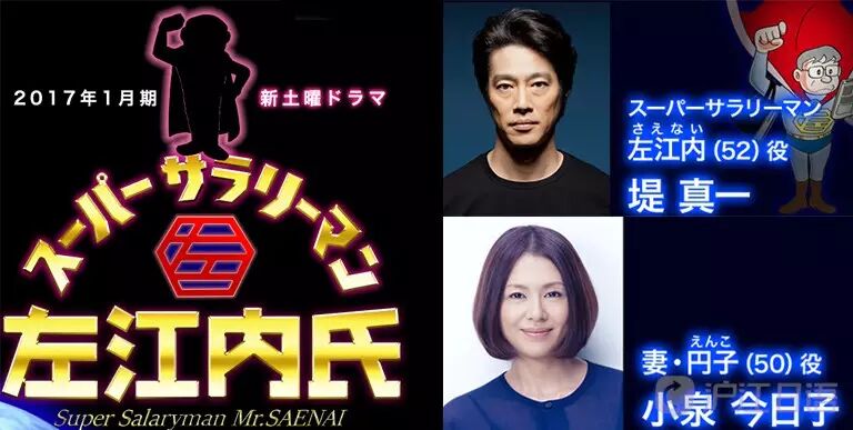 堤真一将主演日本电视台《超级上班族左江内》(17年1月开播,每周六晚9:00-9:54)。原作为藤子・F・不二雄的连载漫画《大人的英雄物语》。毫不起眼的中年上班族左江内,偶然得到了一件“超级西装”,穿上身后,不情愿地为了保卫世界和平而奋斗。