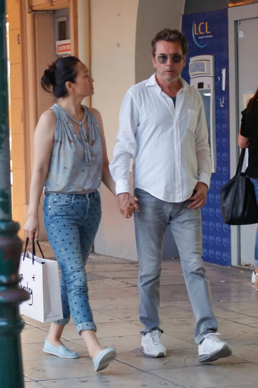 ▵巩俐与70岁的法国男友让•米歇尔•雅尔手拉手逛街 图/视觉中国