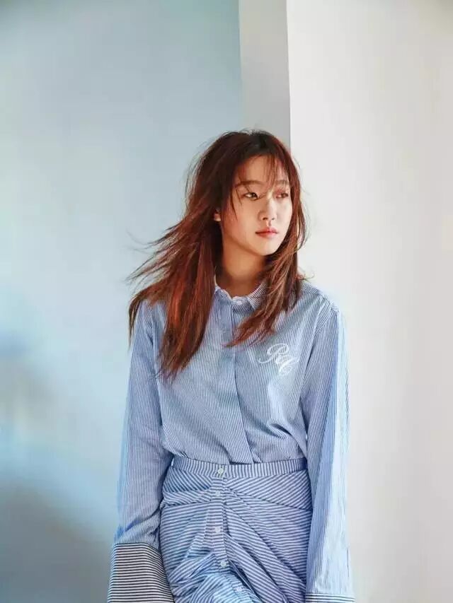 同样的蓝色条纹衬衫,气质美女金高银,穿出了富有青春气息的少女感。