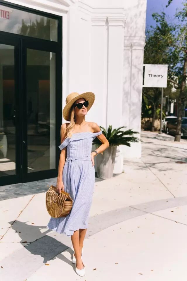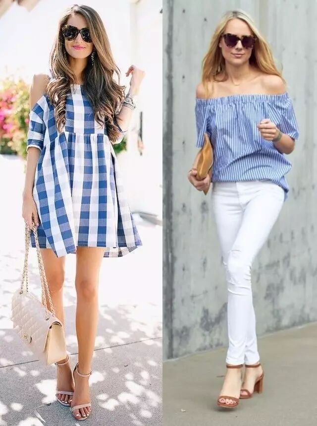 露肩与格子、条纹元素的碰撞,让时髦度直线上升!