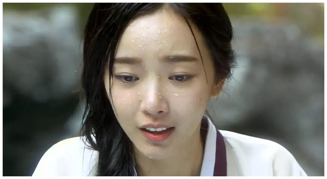 还有这样的,黑长发挽在一侧,脸上有着水滴,眼神中充满着丰富的情感。