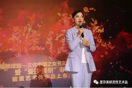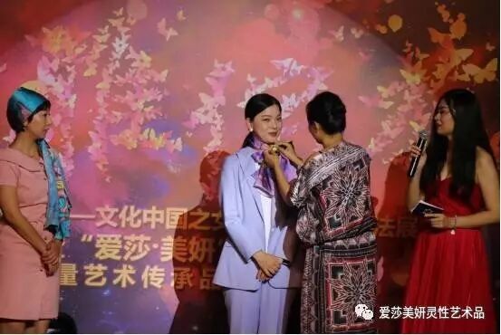 9月11日晚,“优雅绽放”——文化中国之女书文化跨界书法展暨“爱莎·美妍”非遗文化能量艺术传承品上市发布会在北京劝业场成功举办,完美诠释了中西方文化的结合, 传递爱、美和正能量。创作灵感来源于女书、中西方古老神秘符号,同时又将人们的美好愿望相融合,以丝巾、塔罗法器、书法、画作为载体,汲取宇宙能量与时尚元素,解读文化的浪漫,让能量艺术得以优雅绽放。