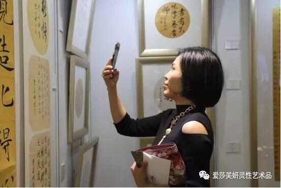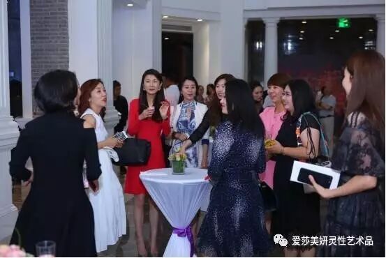 (图为现场来宾对“爱莎·美妍”能量艺术品进行踊跃咨询讨论)