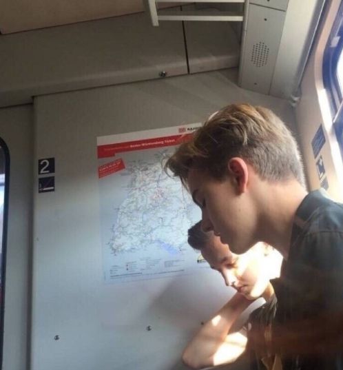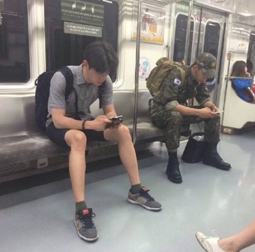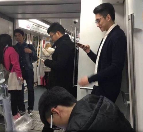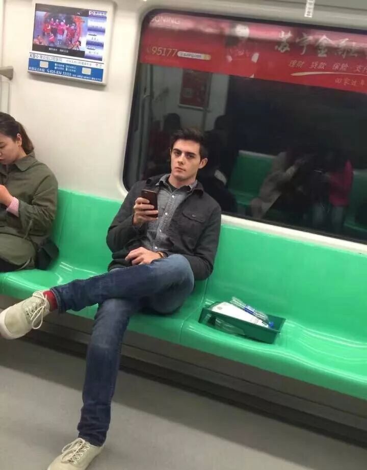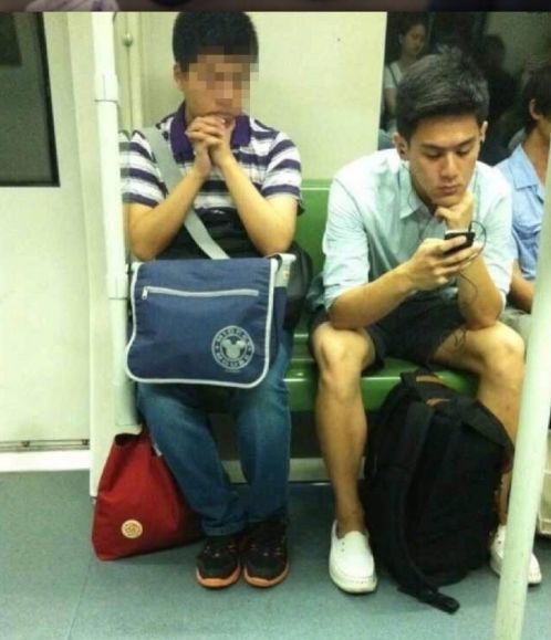 你们这些帅哥怎么肥四?怎么老在地铁机车上睡觉,这样会被偷拍的。