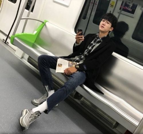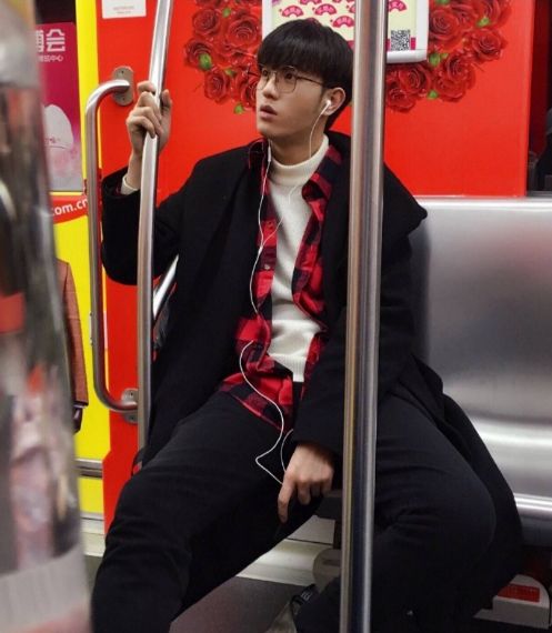 高铁眼镜小哥哥,身姿挺拔,大长腿无处安放,侧脸有点像朱梓骁。