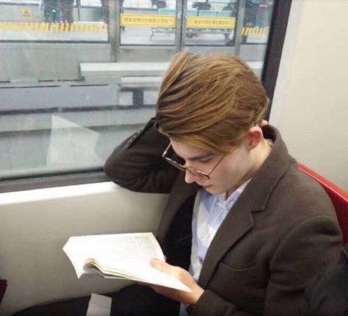认真看书小哥哥,帅哥戴金边框眼睛真让人受不了。