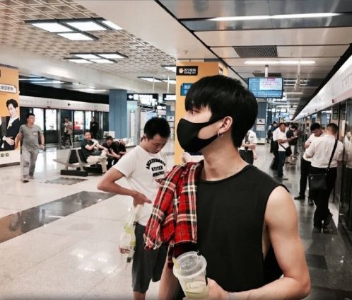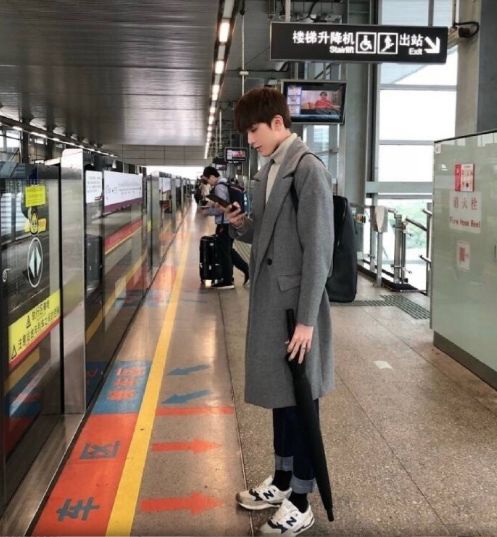 拿伞等地铁小哥哥,远处看气质就很出众。