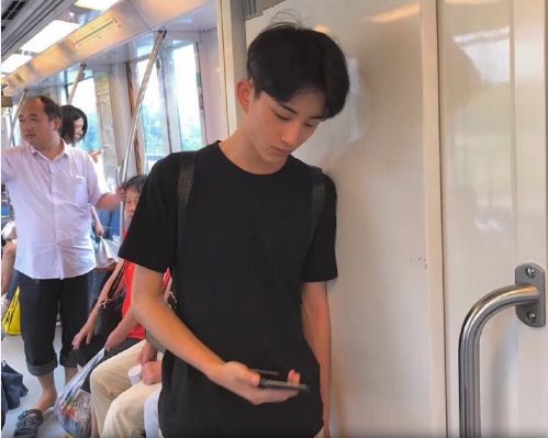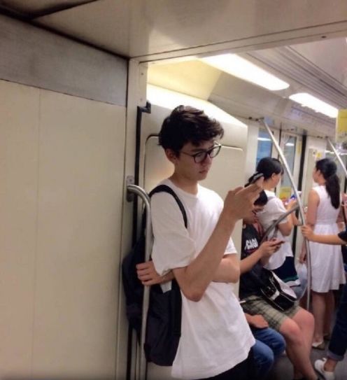 偶遇穿白衣背书包的地铁少年,侧颜好像陈冠希。