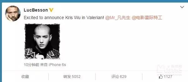其实,他最近在法国开工是在忙着拍大导演吕克·贝松执导的新作——《星际特工·千星之城》