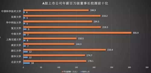 在291个已披露具体毕业院校的百万年薪董事长中,985出身的高管占到48%。