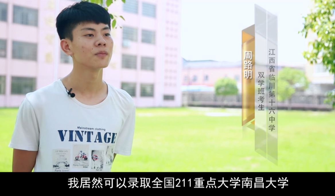 周路明:2017年临川十六中双学班毕业生,2014年中考成绩非常不理想,参加双学班后,最终录取南昌大学。