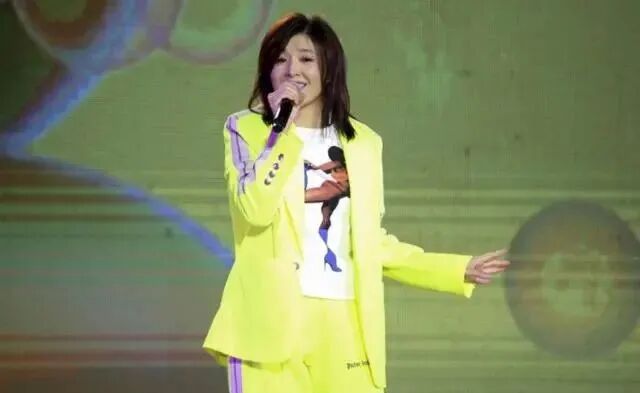 另一位玉女歌手苏慧伦也参加了跨年晚会,跟造型艳丽的周慧敏不同,她穿了一身荧光色西装,配上蓬松的头发,造型酷劲十足。