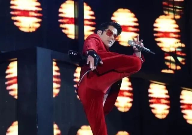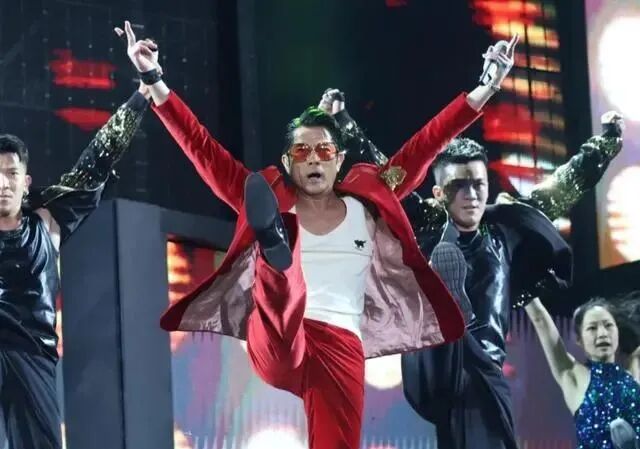 乐坛天王郭富城的表演同样吸睛,他穿着一身红色西装,配上保养得宜的皮肤和好身材,十分帅气,风采不减当年。