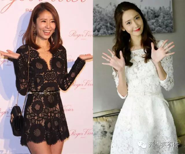 两人除了颜值,衣品都是非常高的,同样穿一袭蕾丝裙,林心如穿黑色蕾丝短裙,深V镂空性感极了, 允儿则穿的清纯一些,白色蕾丝裙更甜美可爱。
