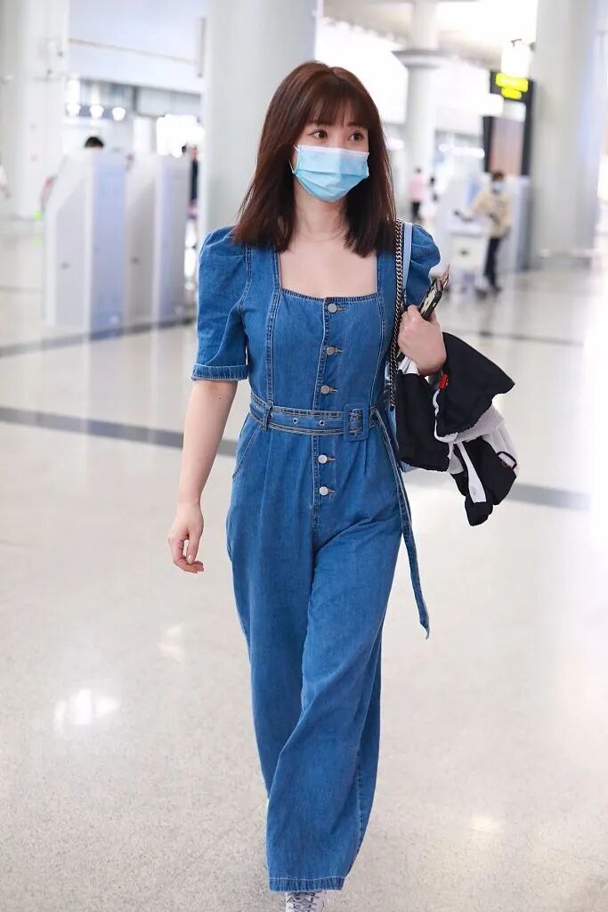 柳岩这次的风格变化可以说是很大了,宽松的牛仔连体服,不显身材不显腿,而且还带着口罩拉直了长发,看上去真的很有初恋女神的感觉了。虽然以往偏向性感风格,但穿起小清新了也是毫无压力呢,真的是百变小可爱呀!