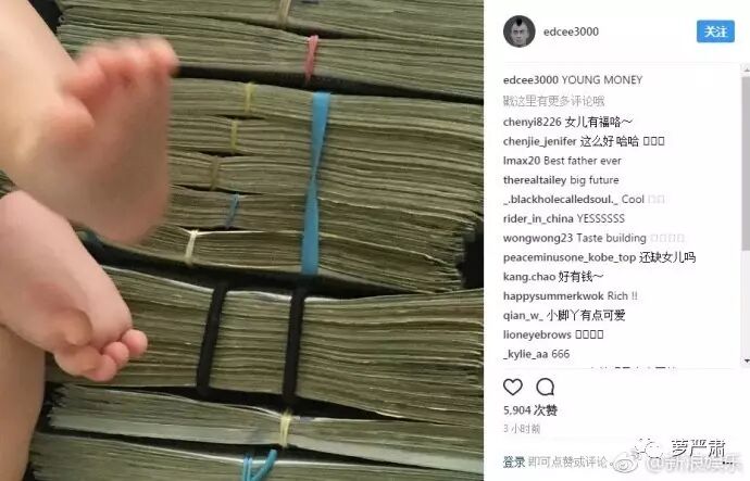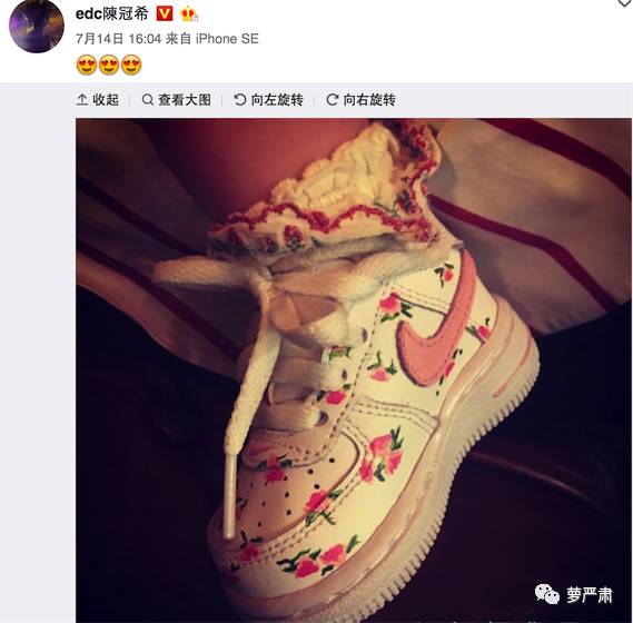 陈冠希晒出的婴儿的小脚,也是穿着潮鞋的。