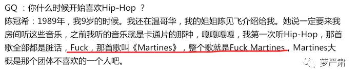 陈冠希的自我教育是hiphop,说“hiphop是我爸”。