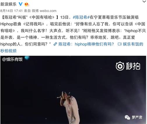 他在草莓音乐节上喊话:“你可以告诉《中国有嘻哈》,我叫什么名字!”