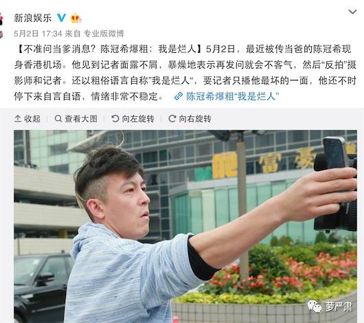 但是看陈冠希平时的新闻就会觉得这个人神经质到一定程度了,炸毛来得毫无征兆。记者正常提问都要被他凶。